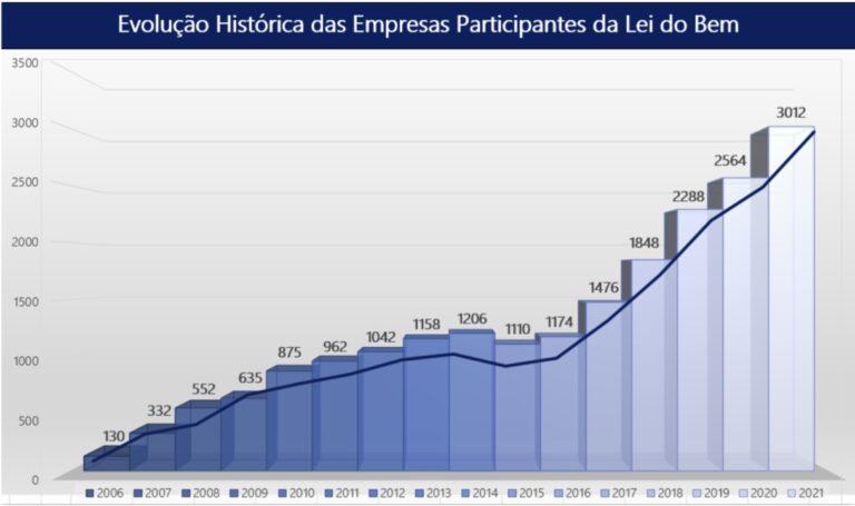 Trata-se de um conjunto de incentivos fiscais criados pelo Governo Federal para estimular as empresas a investirem em pesquisa, desenvolvimento e inovação tecnológica. O gráfico indicado no link a seguir exibe a quantidade de empresas brasileiras que estão buscando na Lei do Bem uma forma de investimento para os seus projetos de inovação (Fonte MCTI).